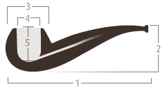 1. Length 2. Bowl Height 3. Outside diameter 4. Chamber diameter 5. Chamber depth